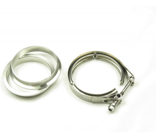 3" V-band kit, 2 ringer og klemme i rustfritt stål.Ringene har selv-sentrerende spor.