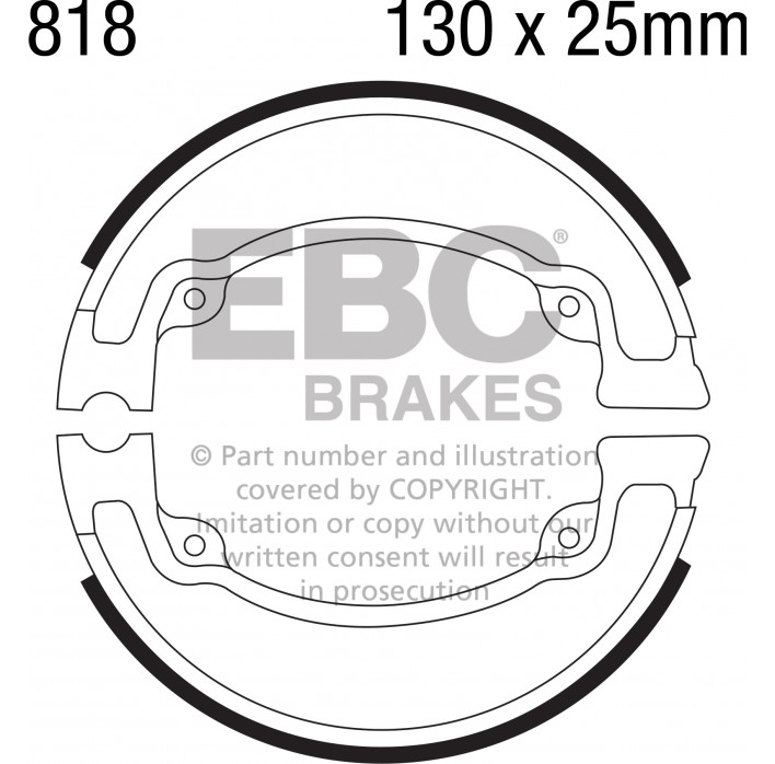 EBC Brakes plain motorcycle replacement brake shoes are an OE quality replacement brake shoe made with boned brake linings and using high pressure die cast aluminium platforms for two wheeled machines. Shoes are edge trimmed and radius ground exactly into the brake drum. They have chamfers on the ends of the lining and come complete with OE style brake shoe springs.