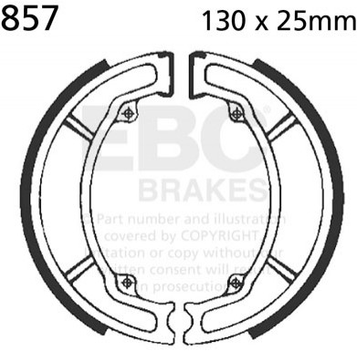 EBC Brakes plain motorcycle replacement brake shoes are an OE quality replacement brake shoe made with boned brake linings and using high pressure die cast aluminium platforms for two wheeled machines. Shoes are edge trimmed and radius ground exactly into the brake drum. They have chamfers on the ends of the lining and come complete with OE style brake shoe springs.