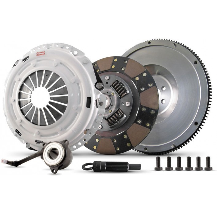 Heavy duty pressure plate. Sprung hub variable friction Organic/Ceramic disc. Steel flywheel included. Upgrade kit including flywheel.
